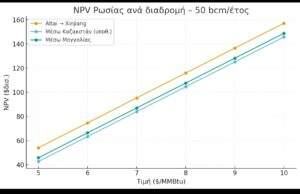 Η Ρωσία με τιμές στα $6–8/MMBtu θα έχει καθαρά έσοδα ~7–10 δις. $/έτος. Το σενάριο Altai δίνει τα υψηλότερα margins γιατί είναι χωρίς transit fees. Η Μογγολία μειώνει λίγο τα καθαρά έσοδα λόγω transit, αλλά αυξάνει την πιθανότητα για περαιτέρω πραγματική ζήτηση.