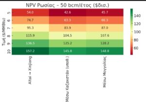 Κόστος/ΜΜBtu: 1,8 $ · Transit: Altai 0, Μογγολία 0,5, Καζακστάν 0,6